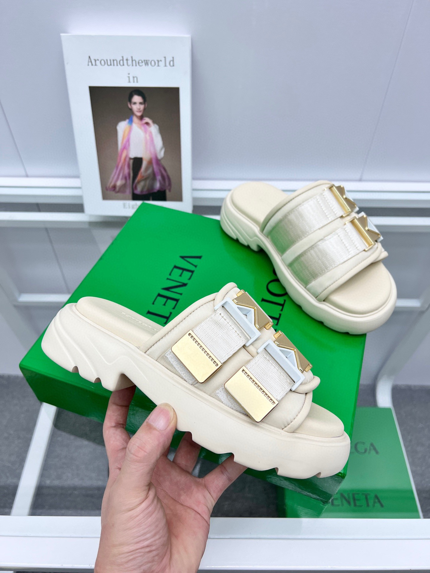 bo*te*ga Ve*ne*ta atomic shearling-trimmed ballet flats