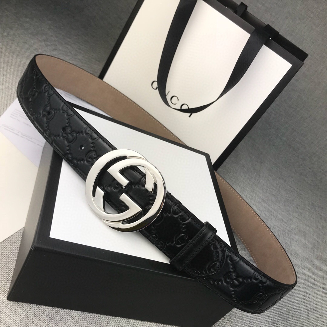 Gucci Calf Leather Belt with Double G Buckle 35mm Width Black
